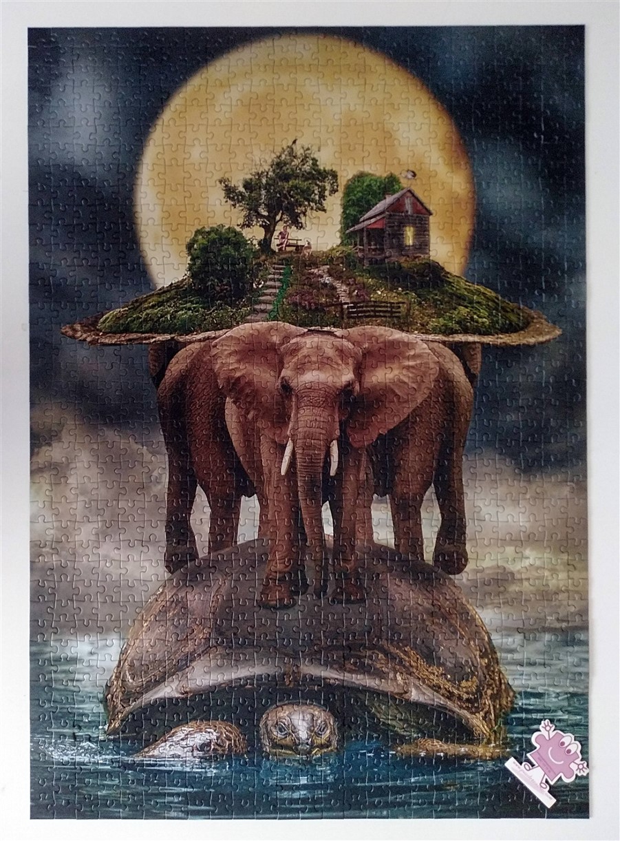 Daha sonra denizin parçalarını ayırıp denizi ortaya çıkardım,arka fonda bulutların olduğu yerler de ayırt edilebilir parçalar arasında,benim birleştirdiğim bu modelde en oyalıyıcı kısımlar kaplumbağa ile fili oluşturan parçalar oldu,sonuç olarak puzzle tamamlandığında harika bir görsel ortaya çıktı.
